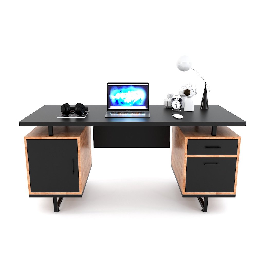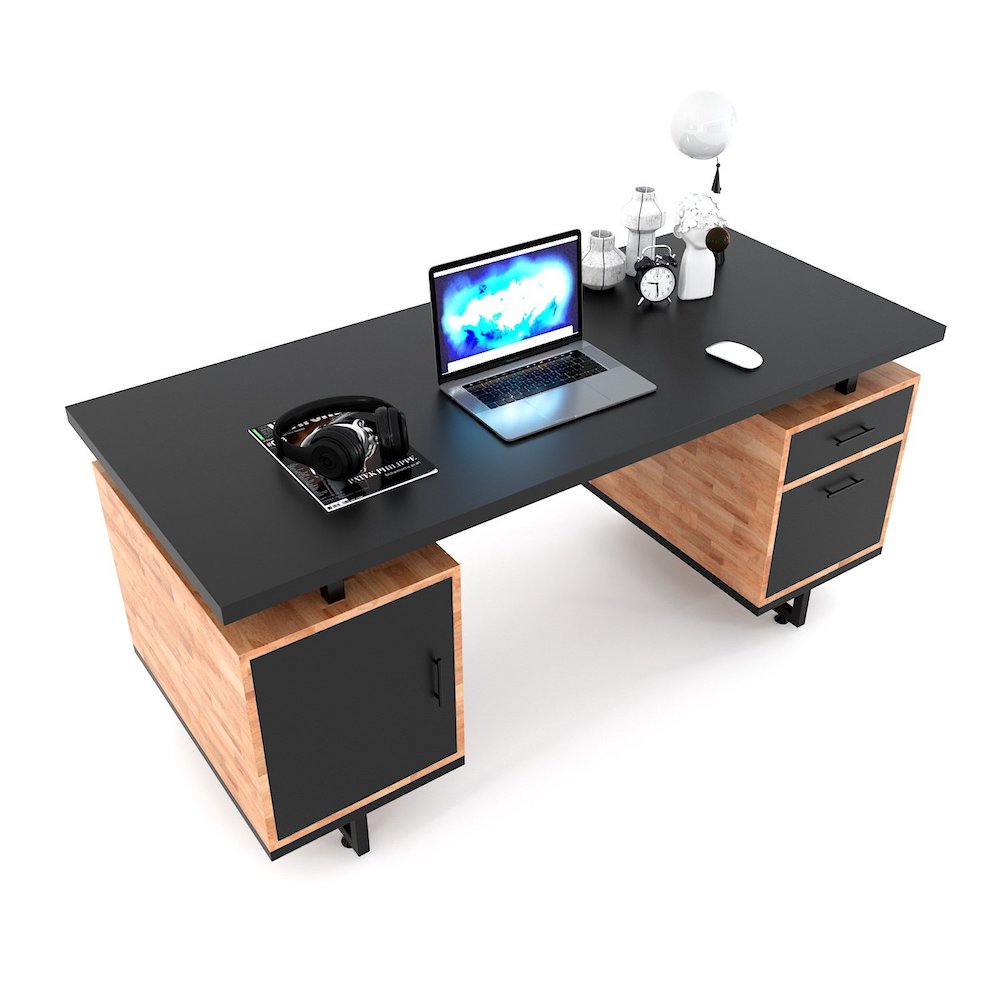 Bàn giám đốc 160x70cm chân bàn kết hợp tủ BGD024 với mặt bàn và chân tủ được làm từ gỗ cao su ghép tiêu chuẩn AA dày 17mm được xử lý sơn PU hoàn thiện cho bề mặt sản phẩm rất đẹp mắt, chống nước tuyệt đối. Chân bàn kết hợp tủ là ý tưởng tuyệt vời giúp tăng không gian sử dụng nhưng không tốn quá nhiều diện tích, đem lại tiện ích cho người dùng cũng như mang lại sự chắn chắn vững chãi cho không gian làm việc của người lãnh đạo. Đế chân tủ được làm bằng sắt sơn tĩnh điện chất lượng cao rất chắc chắn và có khả năng chịu lực tốt, đế chân cao 15cm giúp bàn làm việc luôn thông thoáng, tránh ẩm mốc giúp bạn yên tâm sử dụng trong thời gian dài.