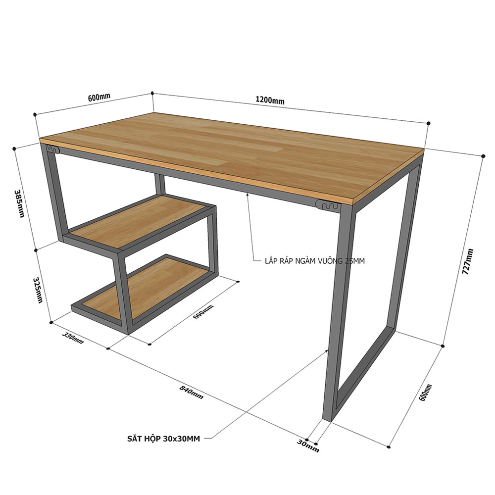 - Thiết kế tích hợp giữa bàn học và chân bàn kết hợp kệ