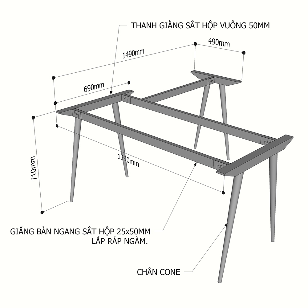 Chân bàn CSCV003 có một kết cấu vững chắc, nhờ có cơ cấu lắp ráp ngàm thông minh, khung chân bàn CSCV003 không chỉ ổn định khi sử dụng mà còn rất linh động với khả năng tháo lắp thủ công bằng tay một cách đơn giản. Với cơ cấu lắp ráp này bạn có thể dễ dàng vận chuyển, thay đổi vị trí bàn làm việc của mình mà không phải tốn quá nhiều công sức.