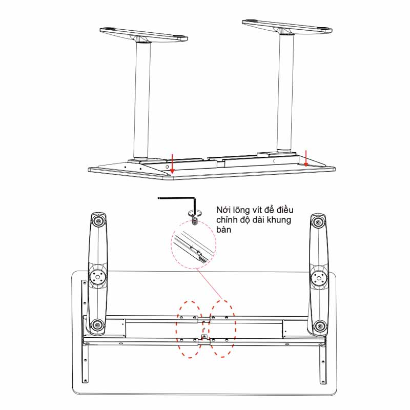 - Kích thước mặt bàn tuỳ chỉnh : chiều dài từ 120cm ⇒ 160cm