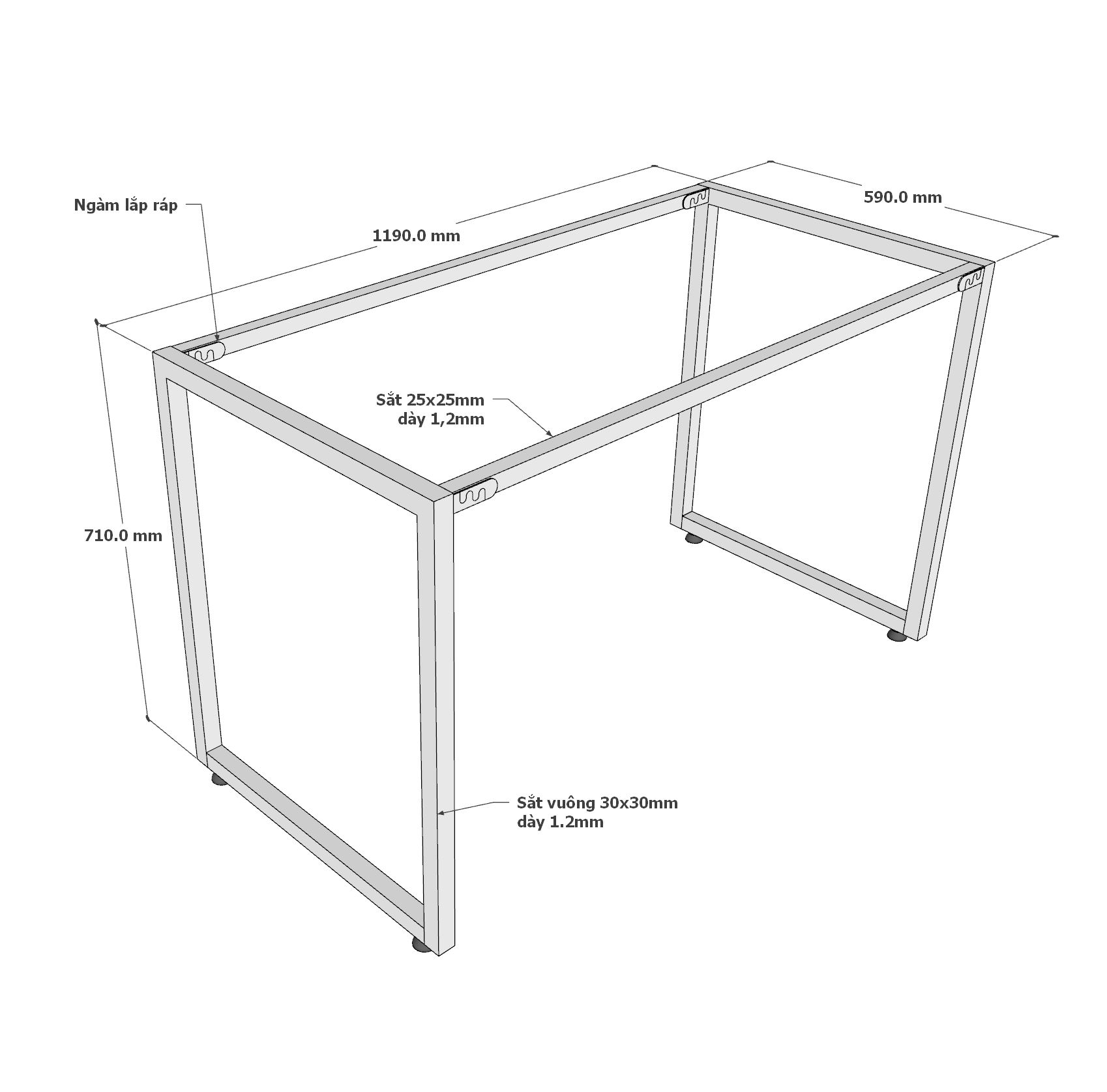 - Chân bàn được làm từ sắt vuông loại dày 1,2mm rất cứng cáp, chịu lực tốt, có tuổi thọ và độ bền cao.