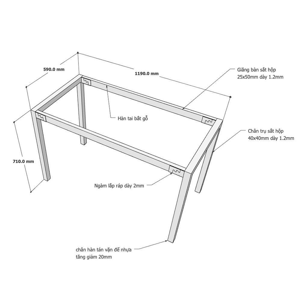 - Chân bàn được làm bằng sắt hộp 40x40mm, loại dày 1,2mm rất cứng cáp, chịu lực tốt, có tuổi thọ và độ bền cao.