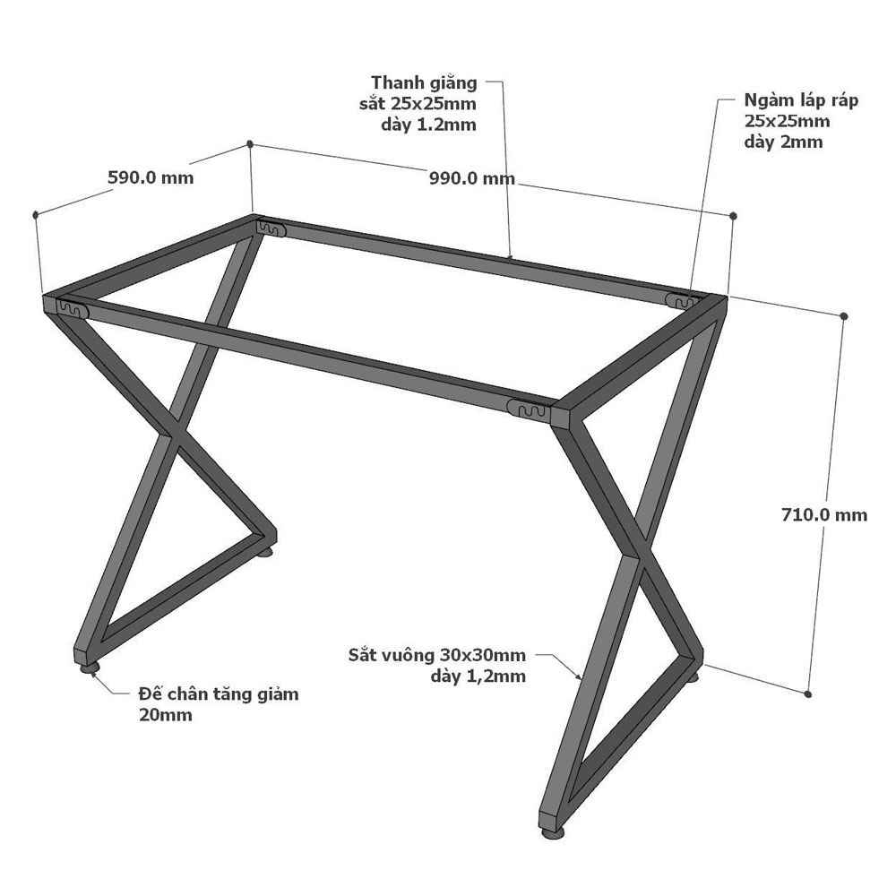 - Chất liệu: chân bàn sắt vuông 30x30mm loại dày 1.2mm, giăng bàn sắt 25x25mm chắc chắn.