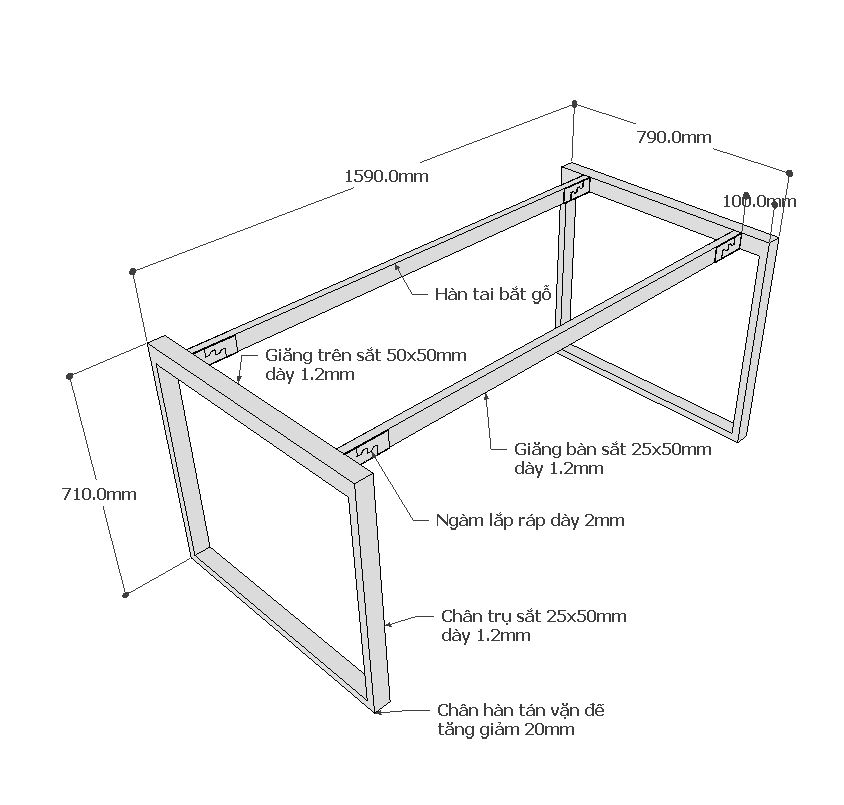 - Giăng bàn sắt hộp 25x50mm hàn tán trong lắp ráp ngàm bằng ốc lục giác chắc chắn