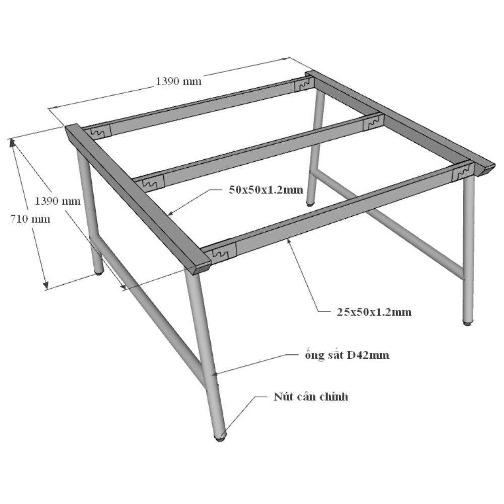 Cụm Chân Bàn Văn Phòng 1m4 SPTYC148 Sản phẩm được thiết kế với cơ chế ngàm lắp ráp tiện lợi, chân ống sắt D42mm sơ tĩnh điện bề đẹp hạn chế hoen gỉ bền lâu theo thời gian sử dụng. Với kcish thước 140x140cm sản phẩm mang đến giải pháp cho không gian văn phòng làm việc rông, các sản phẩm bàn làm việc diện tích lớn.